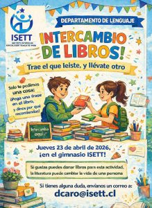 “Invitamos a toda la comunidad educativa ISETT a ser parte de la celebración del Día del Libro 2026, una instancia que nos permitirá reencontrarnos con la lectura, la creatividad y la imaginación. A través de diversas actividades pensadas para estudiantes, docentes y funcionarios, buscamos fomentar el gusto por los libros y fortalecer nuestro compromiso con el aprendizaje y la cultura. ¡Los esperamos para vivir juntos esta experiencia llena de historias, ideas y participación! ![]() “ |